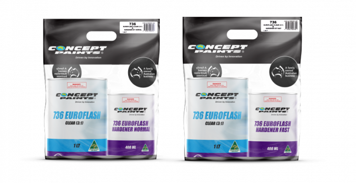Concepts’ 736 Euroflash Clear (3:1) is an ultra-fast curing 2K clear coat, designed for use over basecoat colour systems. It is characterized by excellent flow, producing a high gloss. Due to its fast drying and polishing properties, it is suitable for spot and panel repairs when fast turnaround is required. KIT includes hardener.