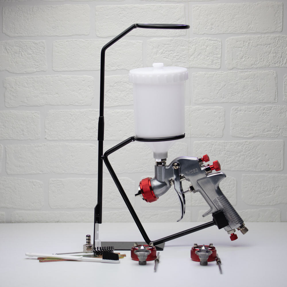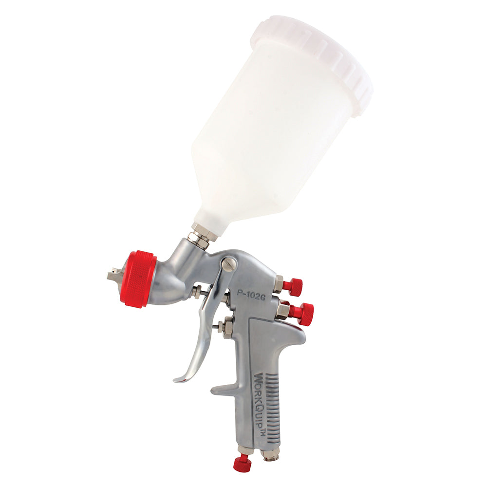 Workquip’s popular General Purpose Gravity Spray Gun includes triple set-up (1.4mm/ 1.8mm, and 2.5mm); a stainless steel needle & nozzle; adjustable air regulator; adjustable fan control and gravity gun stand.